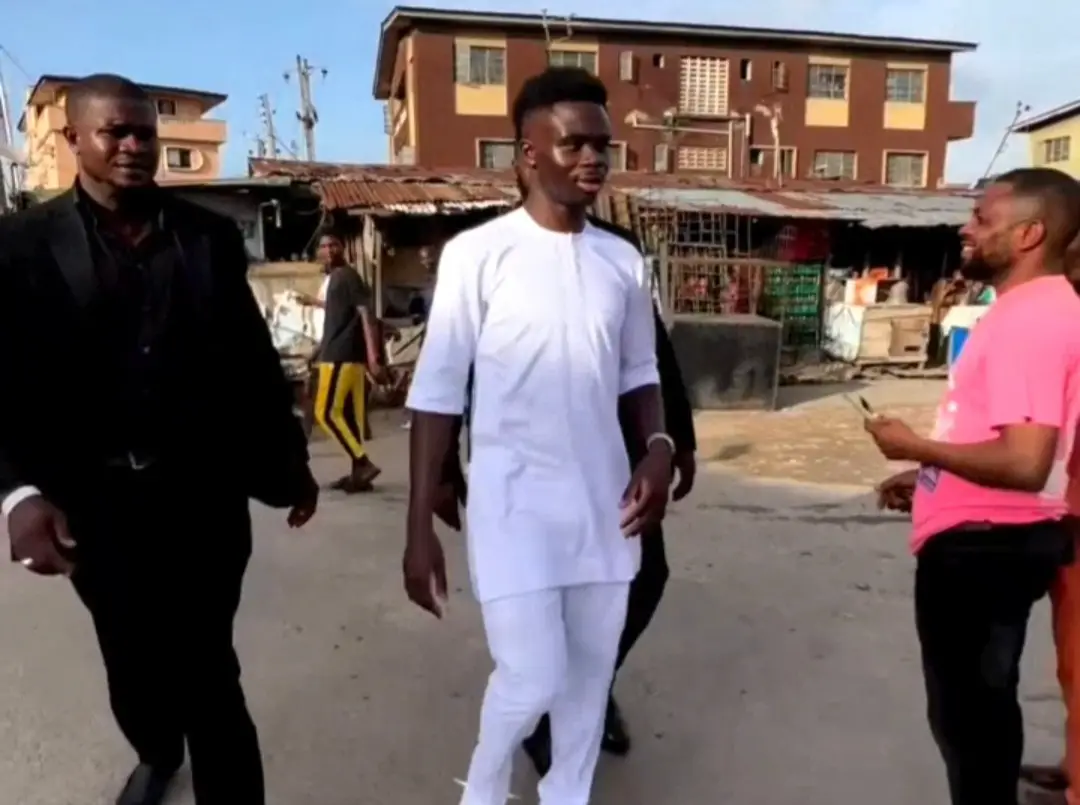 Arsenal star, Bukayo Saka was the cynosure of eyes as he stormed Somolu In Lagos State on Thursday.
